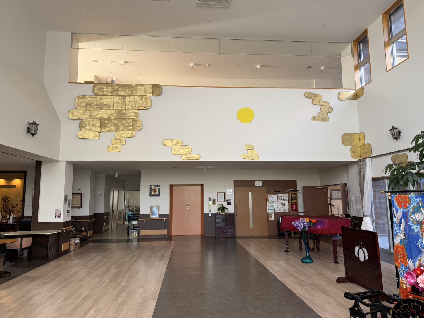 ホールの壁上部に飾られた、雲とお月様がとても幻想的です。