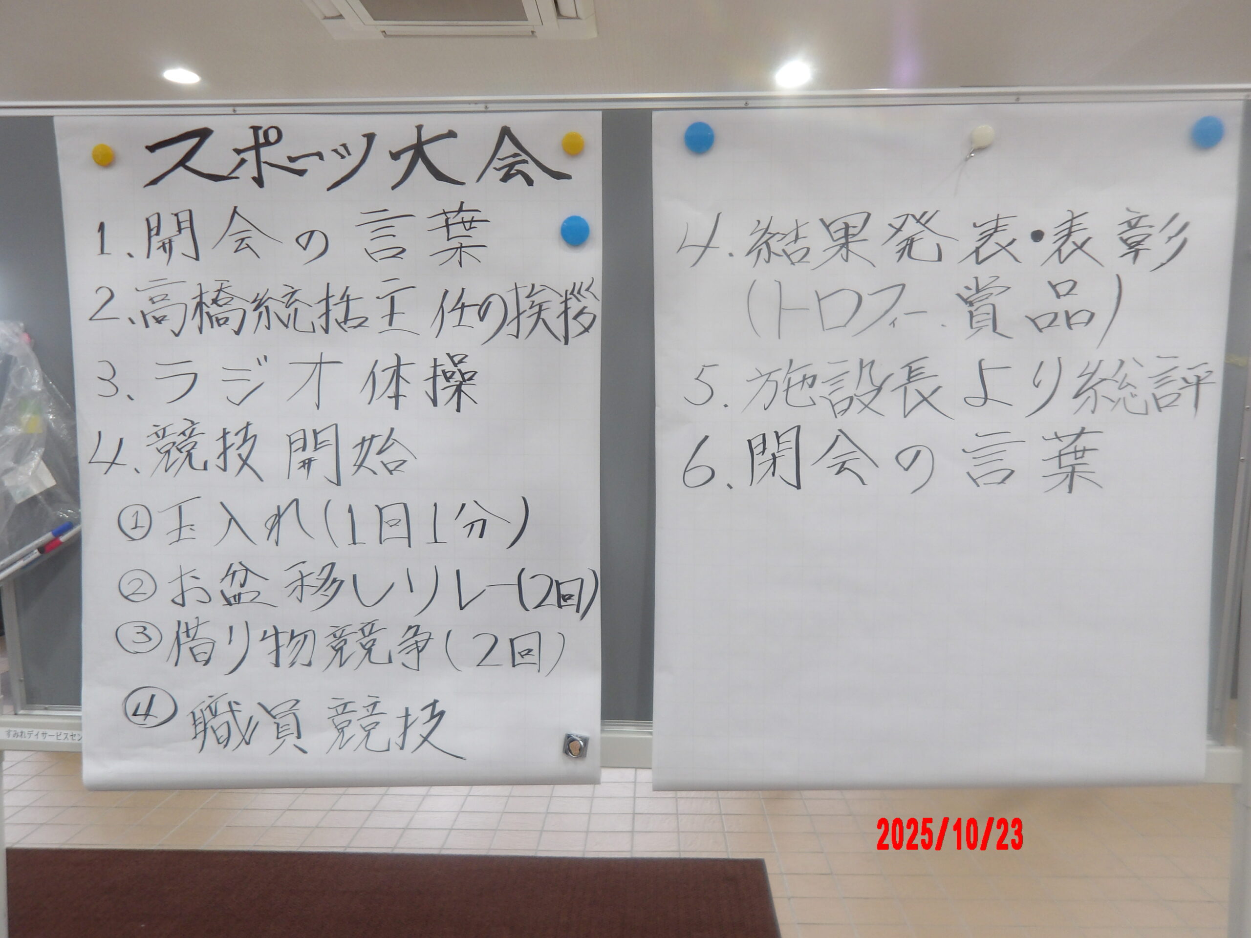 R7/10/23 すみれ特別養護老人ホーム大運動会part2 2025.10.29すみれ特別養護老人ホーム Tweet Share Hatena Pocket RSS feedly Pin it 玉入れも協力しながらどんどん入れていきます。 横の方に上手くボールや風船を渡していきます。赤組も頑張っています。 白組も負けじと回していきます。 テーブルに置かれた用紙を取って、書いてある物を借りに行きます。どなたが早いですかね? Tweet Share Hatena Pocket RSS feedly Pin it 投稿者: blogすみれ特別養護老人ホーム津軽地域, 特養, 運動会, 青森県黒石市コメント: 0